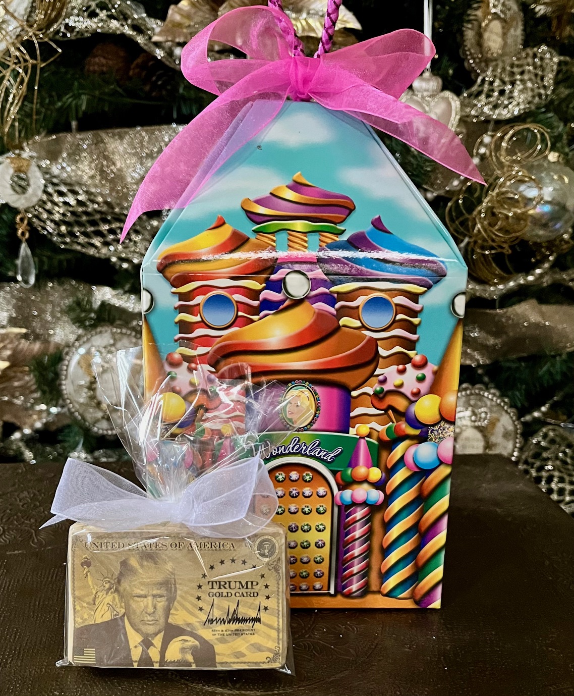 Give the Trump Gold Card Cookie this holiday or for a special occasion gift. Delicious fun for everyone on your gift list this holiday season or throughout the year. Each cookie has a full color image and is individually wrapped in cellophane and tied with a ribbon. There is a minimum of six cookies and your order is packed in our Wonderland Bakery Limited Edition Castle. Enjoy these favorites or our bakery can create any photo, logo, image on a cookie for your special event, holiday or occasion for a unique and memorable gift. We package and ship orders nationwide.